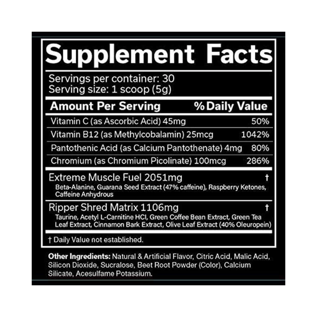 The Ripper! is one of the most effective and fast acting new fat burners on the market. This great tasting, full strength formula mixes in seconds and goes to work within minutes of the very first dose. This is fat burning you can feel. The Ripper! is a fast acting formula, containing a concentrated ingredient blend designed to burn fat and help control food cravings while still delivering clean, consistent energy throughout the day without the jitters or caffeine crash often associated with other weight loss products.If you want a fat burner that kicks like a bull and hits like a bolt of lightning then try The Ripper! today.Designed for hardcore users only, this full strength formula goes to work within minutes of the very first dose.This is fat burning you can feel…This is what it feels like to plug into lightning !!