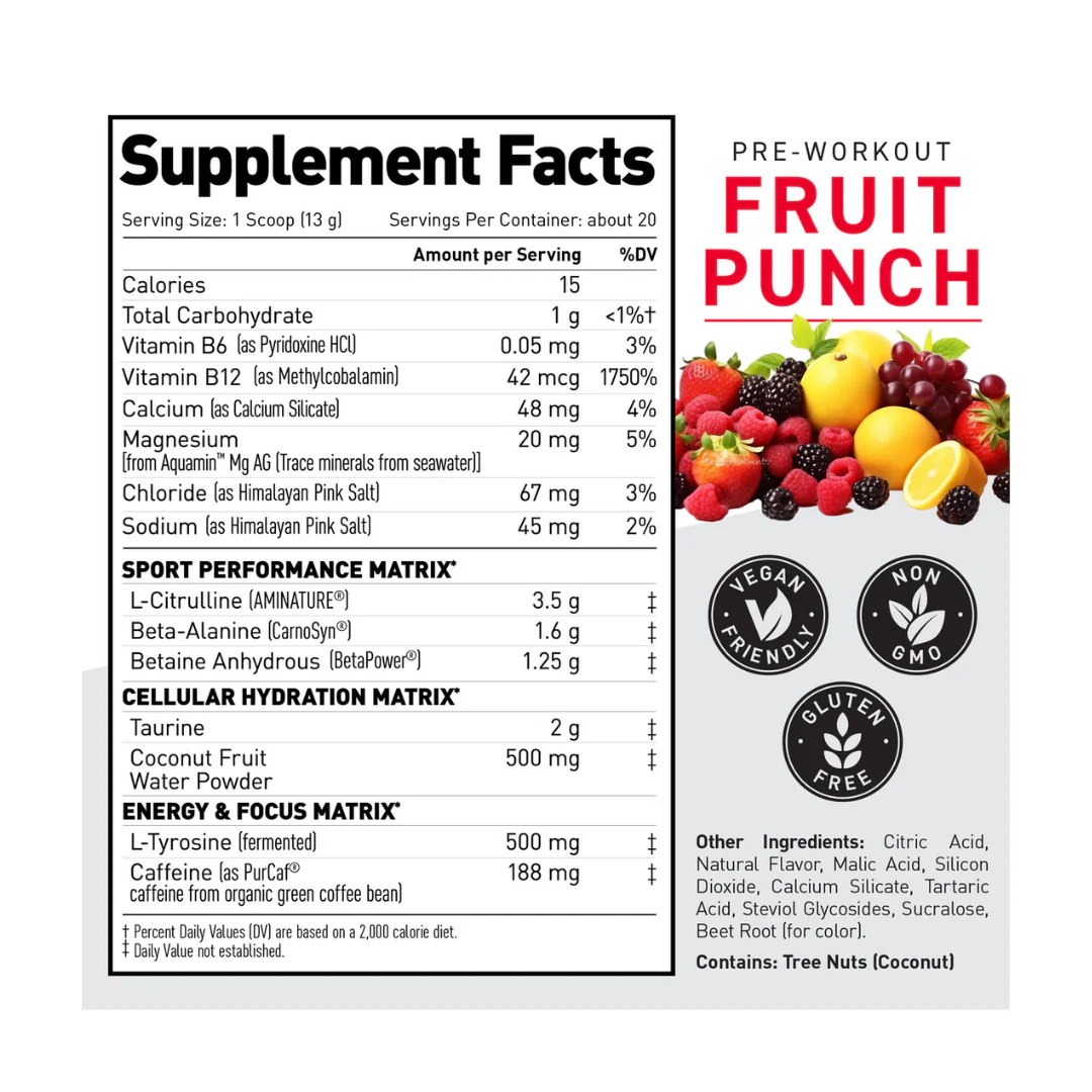 Pre-Workout Sport (formerly Pre-Kaged Sport) is the pre-workout for athletic performance, cardio, and for beginners looking to try a pre. Each scoop has a moderate dose of organic caffeine, electrolytes, and key ingredients like Carnosyn®, BetaPower®, and L-Citrulline. Take this versatile pre-workout to support power, stamina, and overall performance.