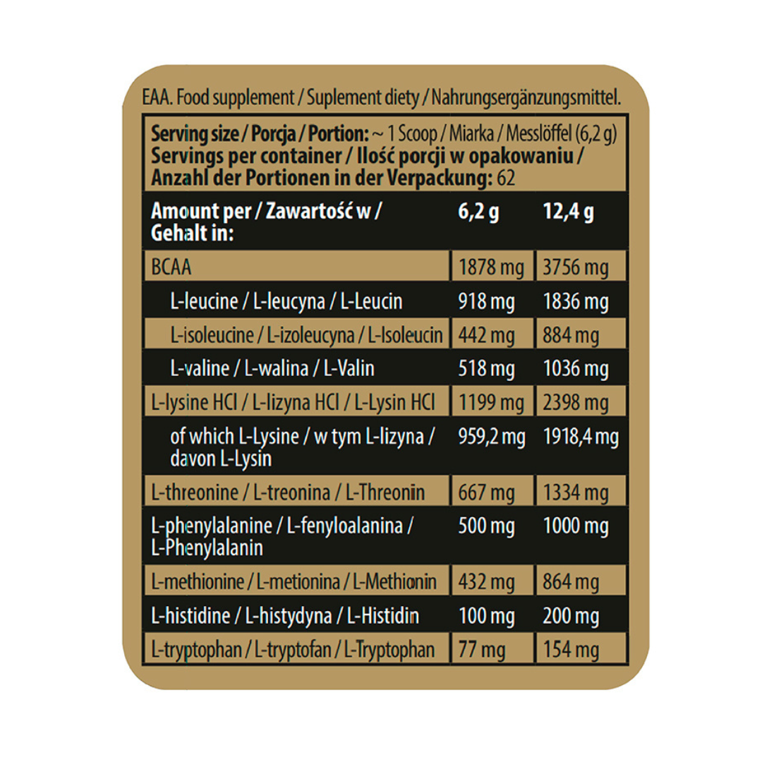 Kevin Levrone EAA is a powerful health supplement that helps you with muscle growth and recovery. There are 20 amino acids, out of which there are 9 essential amino acids. These include leucine, isoleucine, valine, phenylalanine, methionine, threonine, lysine, histidine, and tryptophan.