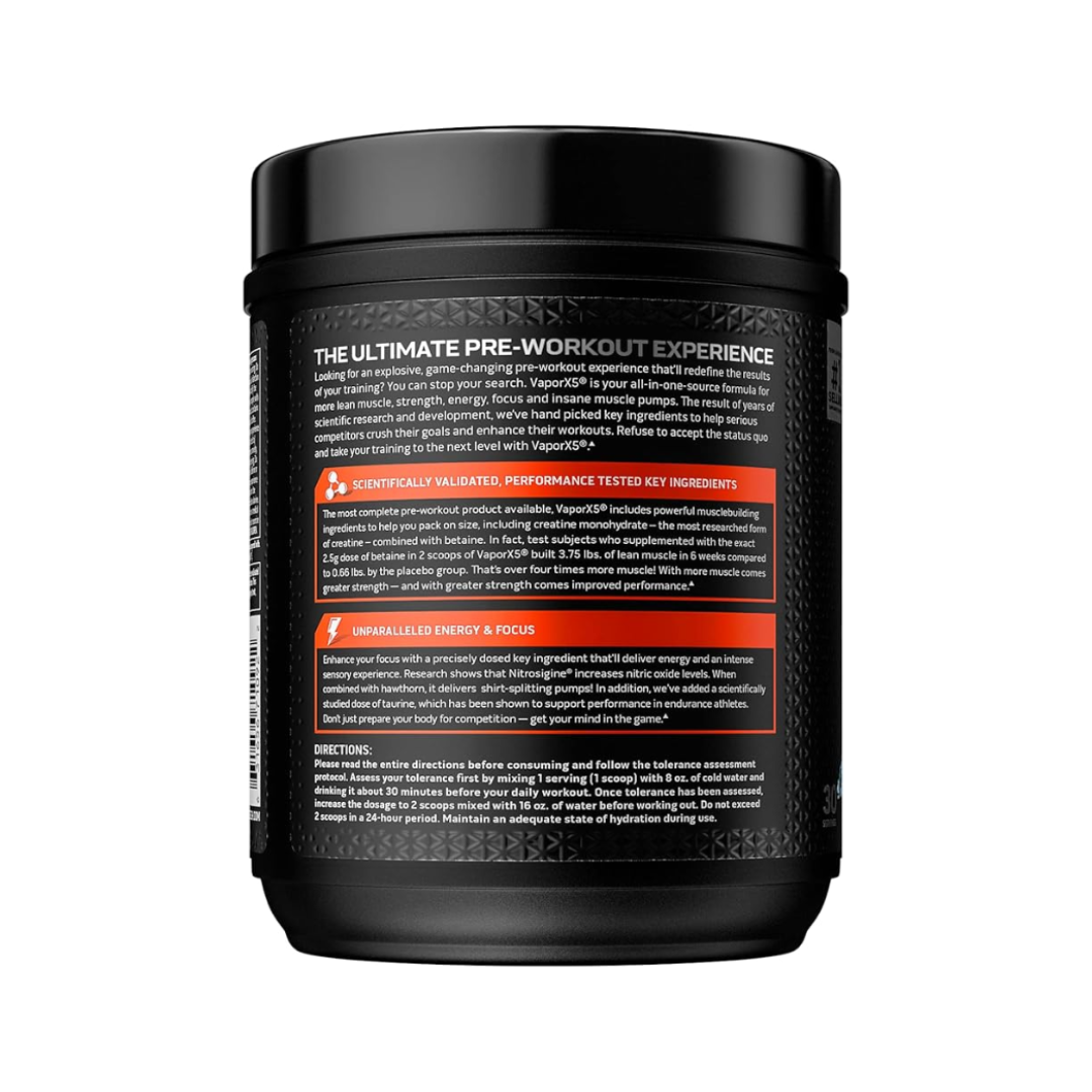 - MUSCLE BUILDER – The most complete pre-workout product available, Vapor X5 includes powerful musclebuilding ingredients to help you pack on size, including creatine monohydrate – the most researched form of creatine – combined with betaine