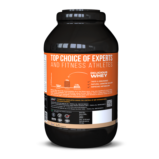 Delicious contains 24g of protein per scoop of 33.3g while offering only 119.6 kcal. It has a smooth texture and great solubility. Delicious Whey is your one-stop supplement for enhanced Protein Synthesis, Muscle Recovery, and Super Performance.