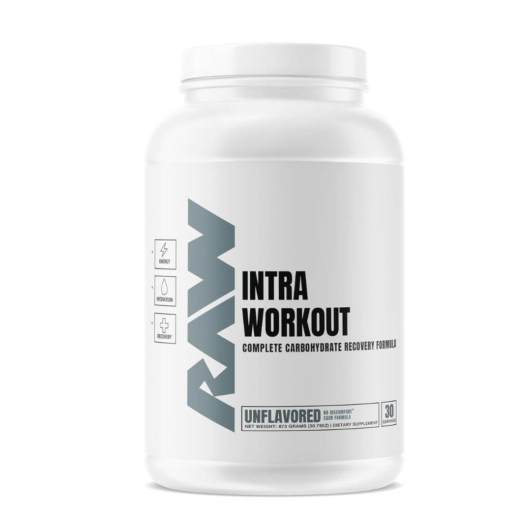 - Intra-Workout Unflavored: RAW Nutrition's premium Intra-Workout formula is an advanced training fuel that helps increase training performance and endurance throughout your entire training session. Combining ingredients that increase training performance and endurance, Intra helps you make every workout the best it can be. 30 Servings, 30.79 oz