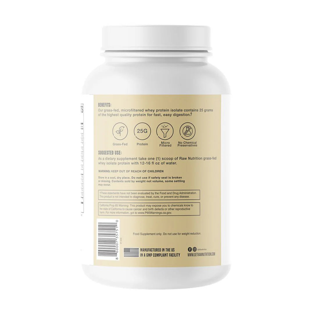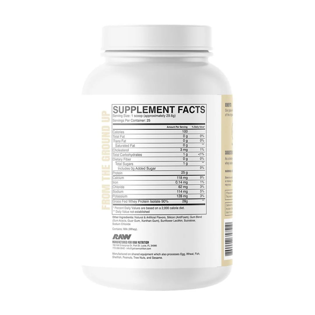 RAW Nutrition brings you our Informed Sport certified grass-fed micro-filtered isolate protein. Each scoop packs 25 grams of the highest quality protein with just 0.5g of total fat and 1 gram of carbohydrates (for most flavors). With no fillers or additives, RAW Protein digests smooth and fast for immediate use by the body to promote the growth of lean muscle tissue.