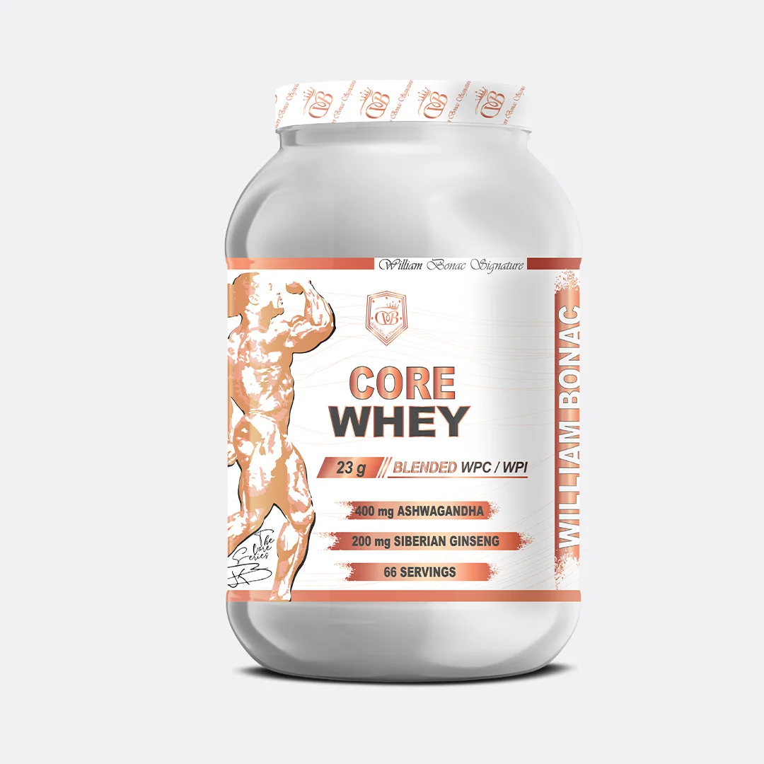 CORE WHEY is not a regular whey protein. In addition to its high-quality blended WPC & WPI, here is the groundbreaking new WILLIAM BONAC CORE WHEY Pro-Testosterone Optimizer. CORE WHEY is a super-potent and delicious blended whey protein loaded with natural testosterone ingredients leading to increase Stamina, speeds up recovery & enhances vitality for athletes aiming to turn their body into a high-performance machine.